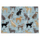 Pitbull Bonito com cores pretas, desfocadas, brindle, azuis e casaco vermelha com estampas de pata e padrão de ossos de cães.