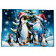 Pinguins bonitos num estilo animado, todos vestindo chapéus festivos de Papai Noel. Eles ficam em volta de uma magnífica árvore de Natal decorada, decorada com ornamentos coloridos em várias formas e tamanhos. Uma grande estrela ouro brilha no topo da árvore, dando a toda a imagem um brilho festivo. Esta design capta a essência do Natal de uma forma brincalhona, transmitindo um sentimento de calor, alegria e comunidade no meio de uma paisagem vinícola.