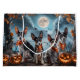 Libere o espírito assustador com esta design sombria do Dia das Bruxas apresentando um bando de cachorros sob um céu escuro e iluminado, cercado por morcegos voadores e abóboras brilhantes. Perfeito para aqueles que amam um toque de diversão terrível com seus amigos peludos!