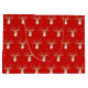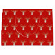 Saco de presente com renos de natal em fundo vermelho. O reno é decorado com bolas douradas.