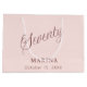 Rosa dourado, fundo esfregado. Setenta é escrito com um guião rosa de ouro escuro. Personalize e adicione um nome e data.