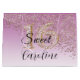 Uma elegante lamparina de ouro rosa a cair ao lado de um fundo poeirento de gradiente rosa. No meio, há um número 16 de brilho exclusivo que corresponde ao estilo do saco-presente. Entre em contato comigo se precisar de ajuda com o design, adicione algo ou altere/remova o número ou qualquer outra coisa.