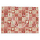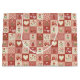 Um padrão fofo e altamente decorativo, desenhado à mão e depois ilustrado digitalmente. ----- Padrão de patchwork de jardim caprichoso e rústico em tons de vermelho e rosa. Apresenta ilustrações pintadas à mão de corações, joaninhas e flores da primavera dispostas em uma grade de colcha falsa. Um design de amor doce e nostálgico com uma estética calorosa.