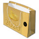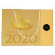 Design elegante com ouro cortado em papel de um rato com frutas (+ o mesmo recorte de papel na cinza formando sombra de queda. Design no grande saco de presentes com Large 2020, Year of the Rat e monograma no preto round + mesma imagem de fundo no verso. Você pode facilmente alterar o texto (fonte, cor, tamanho e posição) clicando no botão personalizar. Cartão de saudação correspondente e muito mais.