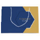 A bolsa de presentes azul corporativa é totalmente personalizável com o logotipo e as informações de sua empresa. Pode ser usado para varejo, corporação ou apenas como um excelente oferecido para exposições e convenções. Projetado por Norman Reutter.