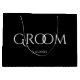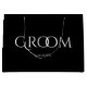 O clássico Groom preto e branco com um grande saco de presentes.