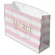 Saco de Presente de Obrigado Merci Beaucoup com Listras Rosa Dourado