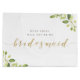 Saco de presente personalizado "Você Será Minha Dama de Honra" para presentes de proposta de dama de honra com caligrafia dourada e design de folhagem em aquarela.