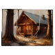 Duas design laterais. Veado de um lado, cabana do outro lado, design rústico de aquarela. Decor para cabana, toca ou quarto para crianças. Excelente de pai no Dia do Pai.