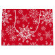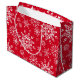 Saco de presente de Natal é mostrado em um impressão festivo flocos de neve de inverno. Vermelho colorido