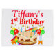 É uma celebração incrível de primeiros aniversarios com este vibrante saco de presentes de bolo de primeiro aniversario vermelho-arco-íris personalizado. Esta criança de 1 ano está pronta para festejar e desfrutar de sua incrível celebração de aniversário com bens festais personalizados. Que maneira fantástica de celebrar este aniversário especial do bebê. Faça com que seus velhos de 1 ano de querido sejam muito mais especiais com placas de papel personalizadas, guardanapos e xícaras.