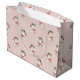 Bota de férias de cowgirl puxada pela mão, decolada no trem de Natal. Padrão de feriado divertido, cor-de-rosa, em um saco de presentes.