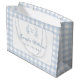 Belo e pastel azul francês inspirou sacos de presentes para chás de bebês com padrão elegante de gingham.