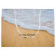 Saco de presentes com fotografia de uma praia ouro marrom arenosa com surf branco de espuma.