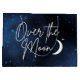 Por cima do chá de fraldas da lua, favoreça bolsas de presentes para seus convidados. Chá de fraldas celestial para uma mãe esperando um menino ou menina. Acessórios da festa com um nome, data e um obrigado que você envia. Design com lua e estrelas sobre fundo galáxico.