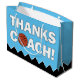 Uma bolsa de presente divertida para os melhores treinadores de basquete do mundo, com OBRIGADOS COACH! impressas em texto branco e uma bola de basquete no lugar do O. Estes adicionam um toque especial divertido a presentes para treinadores de basquete, especialmente na festa ou banquete do time de basquete no fim da temporada!