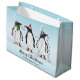 Sacola Para Presentes Grande Três Pinguins De Natal Festivos Com Texto Personal