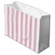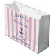 "Perfeito para presentear a noiva ou a sua turma, esta bolsa de presente "Última Escapada Antes do Véu" adiciona um charme náutico à sua despedida de solteira! Com listras rosa e branco divertidas e texto em azul-marinho negrito, esta bolsa é ideal para embrulhar presentes, lembrancinhas ou recordações especiais. Se você está presenteando uma garrafa de vinho, uma lembrancinha divertida ou um mimo especial, esta bolsa de presente elegante fará com que o seu presente se destaque na festa. Um acessório indispensável para a sua celebração pré-casamento!"