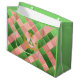 Sacola Para Presentes Grande Ultra Chic Preppy Pink Green Argyle Monogram Crest