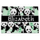 Filhotes de urso preto e branco bonitos da panda como um teste padrão com bambus e um fundo verde que você pode personalizar. Personalize este design do urso de panda com todo o nome.