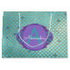 Sacola Para Presentes Grande Verde Teal e Sereia Roxa Escalas de Sereia Monogra