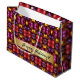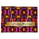 Este padrão colorido de enfeite de vidro é excelente para a temporada de festas. Estes ornamentos brilhantes estão em tons de vermelho, rosa e ouro. Na frente e atrás do saco há uma banda dourada com uma área para texto. Aqui, o texto diz: "Feriados Felizes!", que você pode personalizar.com seu próprio texto.
