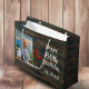 Vidro Rustic Wood Red Wine 60º Aniversário Foto Grande Saco De Presente. Saco de aniversário com fundo de madeira escuro rústico, copo de abstrato com vinho tinto e uma foto personalizada. O texto está em um script branco de tendência e é facilmente personalizável.