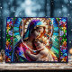 Virgem Maria com Jesus Bebê num mosaico azulejo com estilos de vidro manchado. Saco de presente brilhante, bonito e colorido.