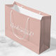 "Você Será Minha Porta-Voz?" O saco de presentes de propostas modernas apresenta o título "Will You Be My Bridesmaid?" no estilo de letra branco do script, em fundo rosa-claro.