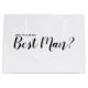 "Você Será O Meu Melhor Homem?" A moderna proposta Gift Bag apresenta o título "Will You Be My Best Man?" no estilo de letra preto do script moderno em fundo branco.