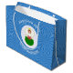 Large gift bag features our angel wearing the flag of Wales for holiday gift decorating or Hanukkah decor. The Welsh Flag angel is found inside a white circular fractal of squiggly squares. The background is a blue fractal of squiggly squares. Add your own text or personalize with a name and the year.