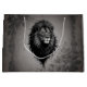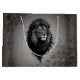 Um retrato impressionante de um leão em tons brancos e pretos. O homem grosso e fluente do leão é a peça central da imagem e cada cabelo parece cuidadosamente trabalhado, dando à imagem uma profundidade dinâmica. Os olhos do leão brilham em uma matiz âmbar quente que cria um contraste fascinante com a paleta de cores monocromáticas. A combinação dos tons negros e brancos negros e o âmbar brilhante cria um equilíbrio harmonioso entre força e graça.