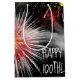 Fogos de artifício no céu noturno negro com nuvens e estrelas para o 100º aniversário. A idade de aniversário pode ser alterada.