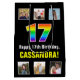 Este design de bolsa de presente temático de aniversário alegre e atraente apresenta um grande número "17", tendo um espectro colorido de arco-íris inspirado em um padrão de gradiente, além da mensagem "Feliz 17º aniversário", e um nome de destinatário personalizado. As fotos acima e abaixo da mensagem podem ser personalizadas, talvez com fotos do receptor, da família e dos amigos do destinatário e/ou do(s) remetente(s) do presente. Um saco de presente temático de aniversário como este pode ser uma maneira divertida de embrulhar um presente ou de apresentar a alguém que comemora seu 17º aniversário. (Fotografia © Storytree Studios, Stanford, CA.) [~Z0000669]