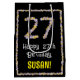 Este design de bolsa de presente floral, inspirado na natureza, apresenta a mensagem "Feliz 27º aniversário" junto com um nome de destinatário personalizável. O grande número "27" e a borda apresentam ícones de flor. Um presente temático de aniversário como este pode ser uma maneira divertida de embrulhar um presente ou de apresentar a alguém que comemora seu vigésimo sétimo aniversário. [~Z0000653]