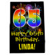 Este design de presente de aniversário empolgante, colorido e divertido apresenta um grande número "65" com um padrão inspirado no gradiente do espectro arco-íris, juntamente com a mensagem "Feliz 65.º Aniversário", e um nome de destinatário personalizável. Ele também apresenta um padrão de fundo colorido inspirado pela aparência de fogos de artifício comemorativos que explodem. Uma bolsa de presente divertida como esta pode ser usada ao embrulhar presentes que são dados a alguém em comemoração de seus sessenta e cinco anos. [~Z0000509]