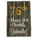 Este design de saco-presente temático de aniversário luxuoso, na moda, e sofisticado apresenta um grande número ordinal "76", com um aspecto de imitação/falsa aparência de ouro, além da mensagem de saudação de aniversário "Feliz 76.º Aniversário" e um nome de destinatário editável em uma fonte estilo script. O fundo tem um padrão falsa inspirado em madeira. Uma bolsa de presente elegante como esta pode ser usada ao embrulhar presentes que são dados a alguém em comemoração de seus setenta e seis anos. [~Z0000520]