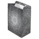 Esta bolsa incomum de presentes foi projetada para um casal 11º aniversário de casamento, tradicionalmente aço. Ele apresenta um padrão mandala baseado em aço cadente, com uma faixa branca e texto editável. Perfeito para preencher com presentes e guloseimas e ideal para se juntar a um cartão correspondente.