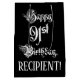 Este design de sacola de presente temático e ornamentado de aniversário árduo apresenta a mensagem "Feliz aniversário de 91ruas," no texto do estilo do roteiro do rico, em um fundo de cor preta. Ele também apresenta um nome de destinatário personalizado. Um saco de presente temático de aniversário como este pode ser usado quando se dá um presente ou presente em comemoração do aniversário de 910 ruas de alguém. [~Z0000557]