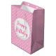 Sacola Para Presentes Média Aniversário de Bolinhas e Diamantes Brancos e Rosa