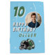 Foto do Cartoon de Capacetes de Futebol, Aniversário, Saco de Presente Médio. Bolsa de presente de aniversário de futebol divertida e moderna. Apresentando uma ilustração ousada de um futebol e capacete em verde e azul. Adicione sua foto, nome e idade.