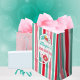 Esta bolsa de presente de aniversário tem um padrão listrado colorido com sotaque de bule e está pronta para você personalizar com seu próprio texto.