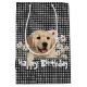 Sacola Para Presentes Média Aniversário Ouro Retriever Em Gingham