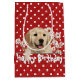 Sacola Para Presentes Média Aniversário Ouro Retriever No Bolinhas