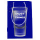 Vidro quente com texto branco divertido e confete de festa em um fundo azul vívido. A cor de fundo pode ser alterada.