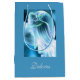 Anjo azul com um brilho majestoso suave ... Embrulhamento de presente facilitado! Excelente para feriados, graduações, casamentos, aniversários, aniversários, aniversários e muito mais. Preencha com seus presentes favoritos...Escolha entre uma variedade de tamanhos de sacos de presentes: pequeno, médio e grande. Com brilho ou matte.