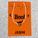 Saco assustador e assustador de presente de Halloween que você pode personalizar com seu nome. Gato negro, bruxa e aranhas...Boo!