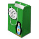 A Sra. Penguin viajou para a Argentina e recebeu um colete da bandeira azul e branca argentina. Neste saco de presentes de tamanho médio, ela mostra-o para ti com uma bolha de palestra para personalizares as palavras dela para a tua mensagem especial. Você também pode mudar a cor de fundo para corresponder ao tema do seu partido ou ao seu gosto pessoal.