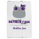 Conhece uma menina a caminho? Destinado a ser um sapo? Esta design fofa é feita em roxo e cinzas com um adorável sapo de chifre de menina - completo com arco. Grande sapo na frente com um lugar para seu nome com um padrão repetitivo do sapo no verso.