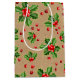 Sacola Para Presentes Média Berries Vermelhos Holly, Natal Clássico